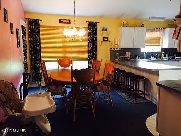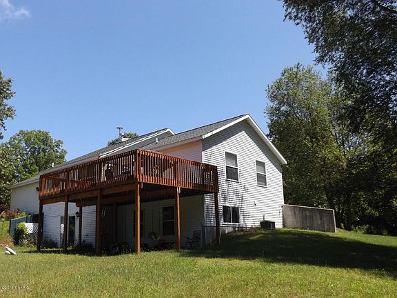 Walkout Ranch on 11 Acres that backs up to Flat River State Game Area ''Sportsman's Paradise''. 5 Bedrooms, Lower Level Family Rm, 2.5 Baths, 2 Stall Attached Garage, Fireplace, Appliances Included, Beautiful Yard, Dining Area W/Sliders to Deck overlooking Back Yard and Woods. Only Minutes from Down Town Belding.