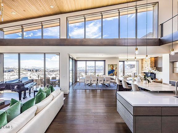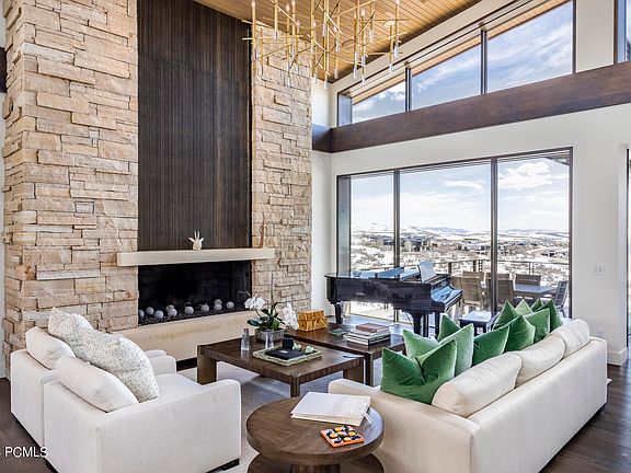 Captivating views of the Park City ski resorts are the focus of this contemporary home in the amenity-rich Promontory gated community. Designed for seamless interior and exterior entertaining on three levels, this Michael Upwall design is replete with luxury custom details. Upon arriving at the heated motor court, an artful entrance leads to the dramatic foyer focusing on expansive windows framing the Wasatch Mountains. Dazzle guests and family with the hillside water feature, new negative edge spa/pool and the adjacent meditation space accessed along a floating walkway. Enjoy the upgraded 10-seat state-of-the-art home theater, golf simulator, wine cellar, lower-level bar, and large decks and patios overlooking the spectacular vistas. Main level living offers a great room, gourmet kitchen, dining area, home office and hearth room. The primary bedroom is a private sanctuary with two entrances to the spa bathroom, a large walk-in closet, and private deck. On the main level, there is also a guest room and ensuite bathroom. Climb the floating staircase to the upper-level loft and sunset suite. The home is elevator ready. On the lower level is a family room with fireplace, game area, home theater, two guest rooms with ensuite bathrooms, a bunk room and secondary laundry. Full golf membership available.