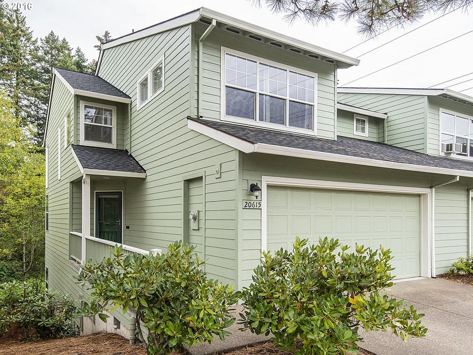 Price Reduced! 2256 Sq. Ft. 3 Level Townhouse. Great Room w/19 ft wall of windows & gas fireplace on main, along w/ Dining Area, Kitchen & Half Bath. Upstairs are 2 Master Bdrms each w/full ensuite & walk-in closet. The Daylight Basement has a large Family Room, 3rd Bdrm & 3rd Full Bath! Lots of storage, 2 car garage. Appliances included. Balcony overlooks greenbelt. Treehouse feel, close to Nike, Intel & shopping. NEW ROOF!