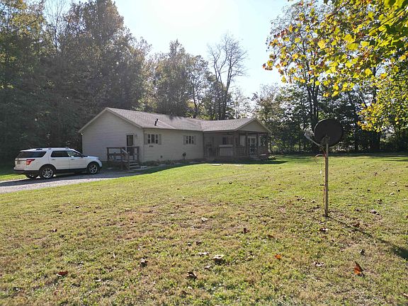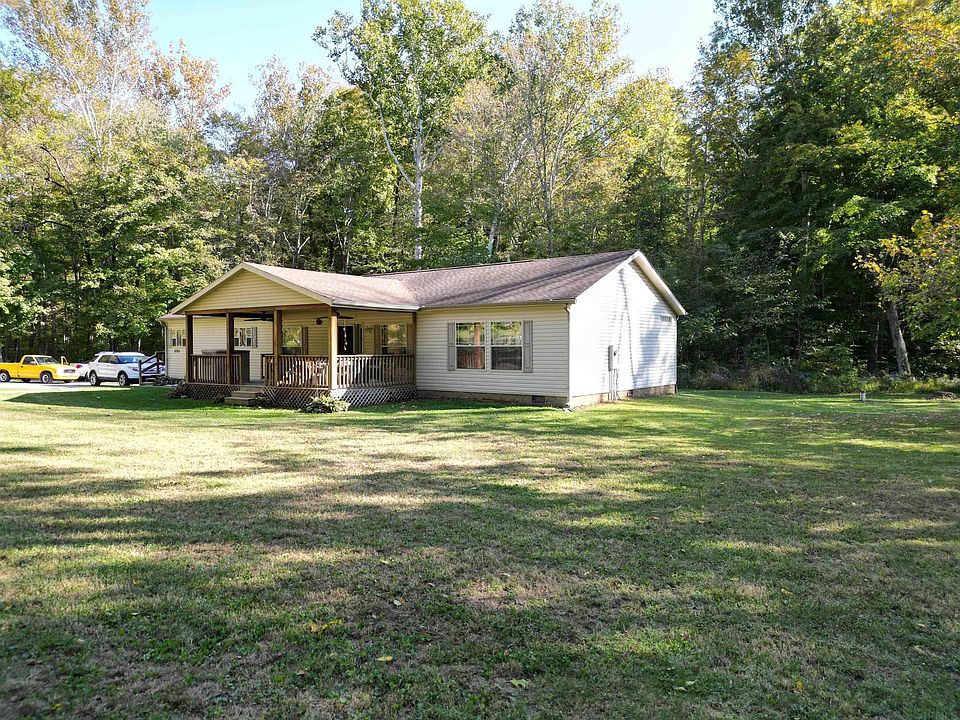 WELCOME HOME to your THREE bedroom, TWO bathroom RANCH on just over THREE acres! You will love the serene country setting as you pull into your driveway and appreciate the wooded surroundings and cute curb appeal. Stroll up to the front door and you will notice your spacious manicured yard surrounding the home perfect for outdoor entertaining or enjoy sitting and rocking on your covered front porch before stepping inside the front door. Inside you are greeted by a spacious living room area with lots of windows and exterior doors to both the front and back yard. Continue on to find a flowing kitchen with an abundance of cabinets and countertop space, spacious walk-in pantry, and comes complete with kitchen appliances. Your home offers an ideal split bedroom floor plan with a spacious master suite with its own private bathroom on one end of the home and then on the other end of the home offers two more bedrooms and a bathroom located in the hallway between them. Off of the kitchen you will find a spacious mudroom/laundry room that is so convenient with convenient access to the driveway from the side door exit as well as comes complete with washer and dryer included. Home also features a pellet/wood stove for an additional heat source. Outside you will love the mixture of yard space and woods to enjoy outdoor activities as well as a firepit to relax around and a storage shed for additional space for those outdoor items. Home has the possibility of 100% USDA financing and comes complete with a One Year HSA Home Warranty with Buyer Seven Star Upgrade. Utility average is: Utilities District of Western Indiana REMC ($100/month). Check out this peaceful, country living home TODAY!