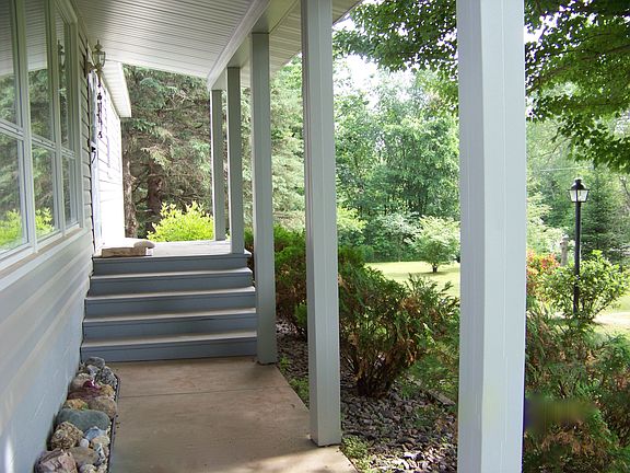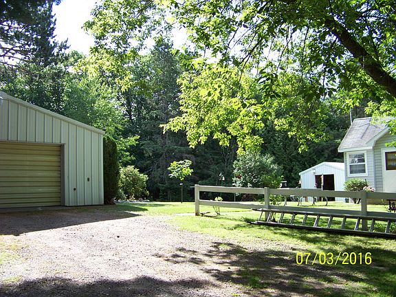 3 Bedrooms upstairs and 1 room with closet (no egress) downstairs. 1 Full bath with his and hers vanity and a 3/4 bath downstairs. Nice sized living room with a large picture window for plenty of natural light. Eat in kitchen with nice solid wood cabinets. Partially finished basement. Nice solid oak woodwork throughout. Steel seamless siding with transferable lifetime warranty. Good roof. Two car and deep detached garage. Oil and Wood heat. An extra shed. Nicely landscaped yard on 4 Acres. A lot of deer. Good well! Septic has drain field. Just a short walk to two bars, snowmobile & four wheeler trails. All on a tar road. 8 Miles to Sturgeon lake freeway exit.