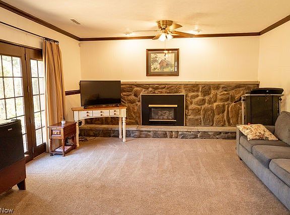 This very unique split level home, located in the much desired Spring Valley allotment in Canal Fulton has much to offer! As soon as you walk into the house, you're welcomed with an open living area with cathedral ceilings and a balcony overlooking the main living area. The kitchen offers maple cabinets, a pantry with roll out shelves & corian countertops. This home also offers a spacious dining room with a storage closet that can be used as another pantry. The foyer is very open and has a closet with mood lighting that highlights the cathedral ceilings in the living area and dining room. Upstairs there are 3 bedrooms and a jack and jill bathroom with an entrance from the hallway and the master bedroom. Downstairs offers a generous bedroom with a walk-in closet, a bathroom with maple cabinets, a marble sink top, a walk in shower, and a huge family room with a gas fireplace. The french doors downstairs open up to a large private backyard with a 16x24 mini barn with a loft and a cement p