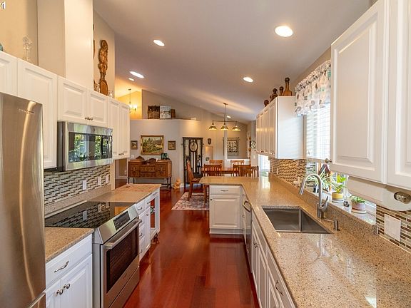 Looking for perfection! Front porch professional landscaped, timber frame style covered back deck, propane plumbed to fireplace, BBQ. Open design, formal dining, gourmet kitchen, gas range, quartz counters, farm sink. Utility room off kitchen & garage. Large open living area opens to patio. Lovely master suite, w/double sinks & shower. Nice size guest rooms split bdrm design. Bonus room w/full bath & den/office. Garage cabinets & sink. Raised garden beds, bridge, sidewalks, deck & patio. Propane fire ring. Lush landscaping, private & secluded. Move-in ready! Engineered Brazilian cherry woodfloors. Drip sprinklers. Leased propane tank $65/yr (Ferrell) All lightbulbs in home are LED. BH7553