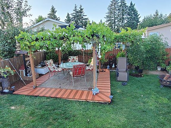Beautifully FULL remodel from floors up! Newer Roof. This is a Stick built home now! All drywall inside. Walk in Mud Room, Game room entry. Tiny home or She Shed in back., 12 by 22 ft with a Porch, . Carport for 2 vehicles. Plus a Mancave, Tool shed in front. Back an front yards fully landscaped with Grass, Flowers, Shrubs, Fig trees, Apple, Cherry, Pears, Grape Arbor, with 11 by 11 cover. Banana Trees. Greenhouse, in ground sprinklers, Covered Bar Stooled BBQ area. Cement Fish Pond with Koa Fish! All fenced. Covered entries! Stainless Steel appliances. Real Redwood Kitchen counters! Water filter system. Samsung washer an dryer. Newer Pictures on Request. This is an ALL ages Park!