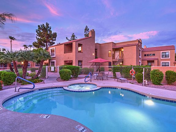 THIS EXCEPTIONAL CONDO IS PERFECTLY LOCATED WITHIN THE INTERIOR OF THE RANCHO ANTIGUA NEIGHBORHOOD. Enjoy dramatic views of mature landscaping and the community open space. Unique end unit is very private and quiet! You will appreciate the bright and cheerful interior and preferred floorplan. Living, Kitchen and Dining Areas are all open and have great functionality. Large kitchen with plenty of cabinets and counter space. Interior recently upgraded and is in very good condition. Fireplace in living room with tile flooring throughout. Walk-in closets in both bedrooms. Very clean and move-in ready. Private balcony is south facing with nice views. Enjoy the Scottsdale lifestyle with resort style pools, large workout facility, tennis courts and club house-recreation room.