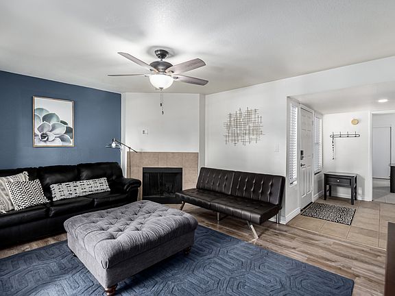 2bed/2bath unit with 1,053 sqft. Upon entry you'll have a spacious dining room, and living room with wood burning fireplace. Bedrooms are split allowing for privacy. Large primary closet . Vinyl plank flooring, updated hall bathroom with tile surround. Newer AC unit installed in 2018, hot water heater 2022 & new windows recently installed. Private patio with mature trees adds privacy and shade for our Az summers. Wonderful active community features 3 pools, community gym, sauna, clubhouse, bbq/firepit & tennis/pickleball courts. Access to Pima walking/biking trail. Close to freeway, shopping and dining.