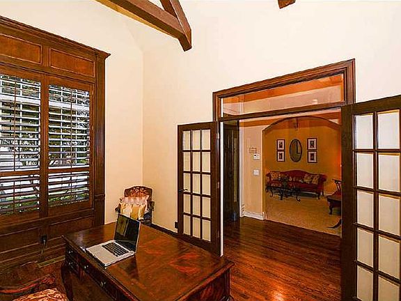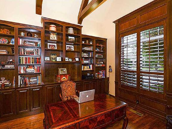Formal LR/DR; greatroom w/Kitchen,breakfast & den;library w/French doors;master en-suite & 2nd down,3BR & media up.Kitchen w/SS, Thermador 6 burner stove/oven, 3cm granite,tile,& backsplash. Furniture quality built-ins,plantation shutters & safe room.