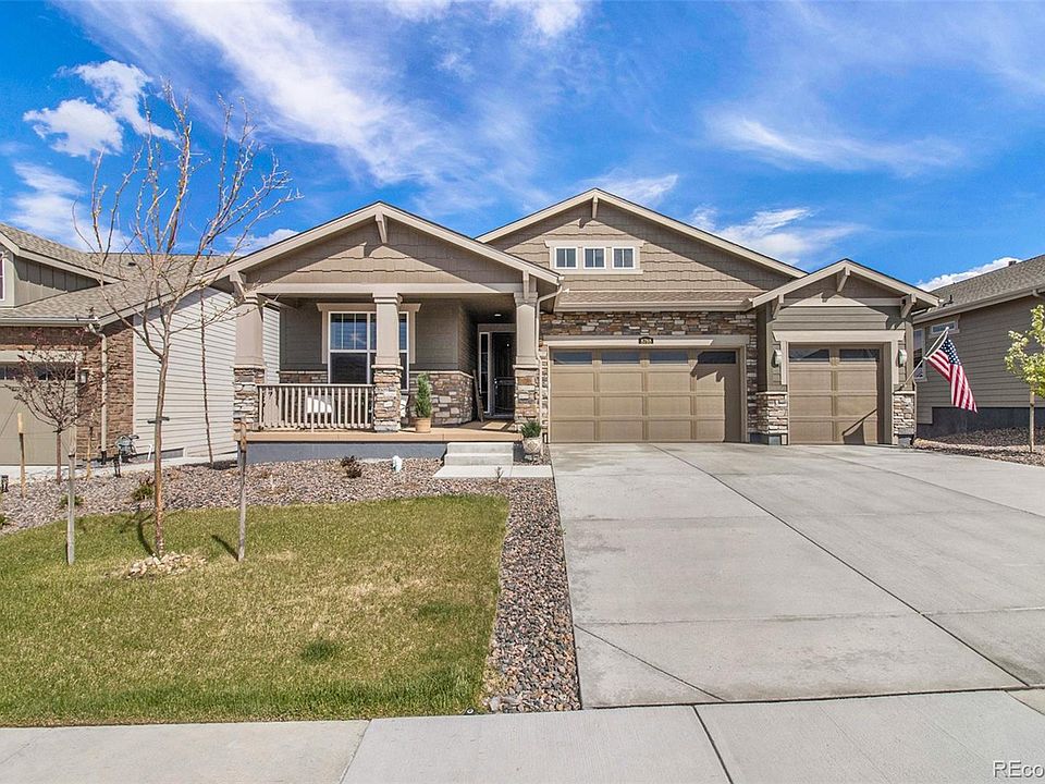 Stunning 3 Bedroom 2 Bath home fully reimagined with custom upgrades throughout. Lennar Hamilton Ranch Plan in the Inspiration Community. Beautiful kitchen with slab quartz counters/new backsplash, large island with wood accents, luxury vinyl plank flooring, eat in area, brand new/high end appliances (replaced all builder appliances), custom copper sink with touchless faucet. The master bedroom has new ceiling wood accents along with a bathroom suite that includes double sinks, walk-in shower, large walk-in custom closet, access to the laundry room, new lighted mirrors, bidet toilet, and new wall tile. Other features include custom wood plantation shutters added throughout the home, new paint, tile wall accents, high end LED lighting inside and outside the home, upgraded faucets, 3 custom swinging doors and a front bedroom electric fireplace. All new pet resistant screens in home. OVER 55K IN UPGRADES ADDED. Energy efficient features including solar, high efficiency furnace + central air. 3 car garage with professionally finished epoxy flooring and new paint. Extended covered deck with dual ceiling fans overlooking the fully xeriscaped backyard with artificial turf pathways. See attached list for more on upgrades done by current owner since purchase. Full walkout basement, ready to be finished! Incredible active 55+ community with high end clubhouse, pool, tennis courts, gathering spaces inside and outside and much more. Short drive to Downtown Denver, DIA, Lonetree, DTC and beyond.