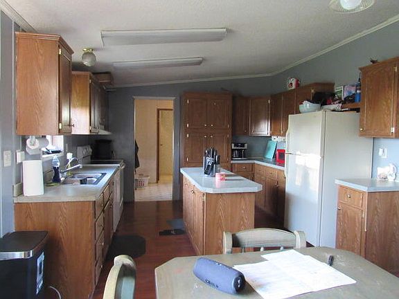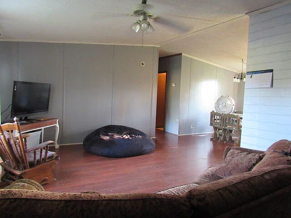 A place in the country located right off a state paved road and just 8 miles from town. A 3 bedroom 2 bath home with walk in closets and right off the Master is an office or nursery. It has a large kitchen with lots of counter space with kitchen appliances, utility room and a back deck The yard is level, fenced with large shade trees