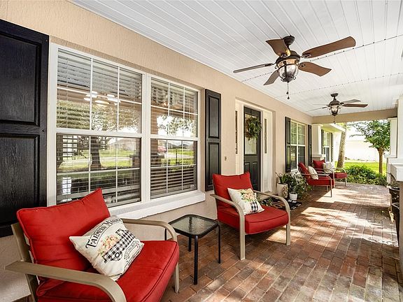 HOME WARRANTY INCLUDED! New roof June 2021! See video! Welcome home to this beautiful and Plantation/Cape Cod style 3 bedroom, 2 bathroom home in the established gated Majestic Oaks subdivision. Bonus Room/Flex Room/Office could possibly be used as a 4th bedroom if needed, has window and closet. The home features a welcoming front porch plus many architectural details throughout including high ceilings, a spacious open floor plan, wood burning fireplace, split bedroom plan, a functional kitchen with breakfast nook, plenty of cabinet space and stainless appliances. Wood floors throughout with brand new carpets in the guest bedrooms, tile in the laundry and bathrooms. Side entry garage, irrigation system, formal dining room, screened lanai looks out to the fenced backyard. Freshly painted interior and exterior.