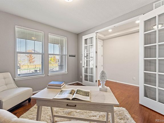"Marry the house and Date the Rate!" Seller to provide concession for 2-1 rate buy-down for buyer with an acceptable offer! Better than new with beautiful landscaping and finished basement, this bright and open 5-bedroom home in the Dove Village community in Parker is turn-key! Conveniently located, this home allows easy access to E-470 and I-25 while also being close to local shopping, restaurants and of course, Parker’s Mainstreet! Featuring engineered hardwood floors, tall ceilings, and the open floorplan with main floor office you’ve been hoping for; you’ll adore the vibe of this home as soon as you enter! The eat-in kitchen boasts a huge island, expansive cabinetry, walk-in pantry and stainless steal appliances, wonderful for entertaining! The spacious family room includes a cozy gas fireplace with custom surround, lovely for our chilly Colorado evenings. Step out back to enjoy the stamped patio, yard and get ready to try your green thumb! This fantastic lot is home to several large garden boxes, all on irrigation so you can grow your own flowers and veggies with ease! Upstairs you’ll find three secondary bedrooms, a fantastic loft area with plenty of flex space and a primary bedroom suite complete with tray ceilings, a beautifully finished 5-piece bathroom and walk-in closet large enough to make you jump for joy! But wait..there’s more! The professionally finished basement is an awesome hangout! Showcasing a dry bar with mini fridge, a comfortable media room, an additional bedroom and ¾ bathroom, as well as storage, this home has a space for everything and everyone!