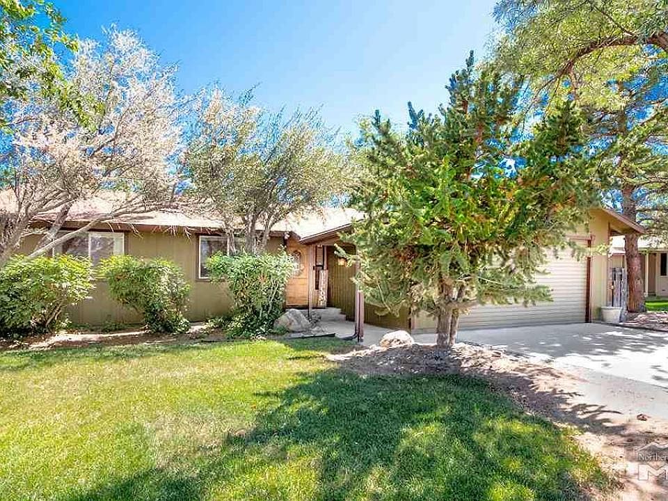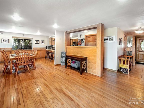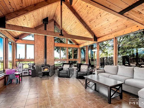 This is the most unique home in the Indian Hills subdivision at the very south end of Carson City, overlooking the Minden Valley. The home sits in the perfect spot to enjoy the breathtaking mountain and valley views from the large back deck. The interior of the home features a large family room area surrounded by large windows, many of which are new Anderson windows. Both sliders to the back deck are new as well. A cute little loft can be used for extra storage or an office or both.