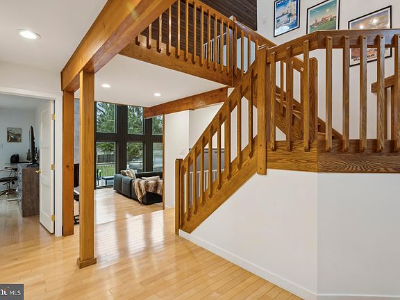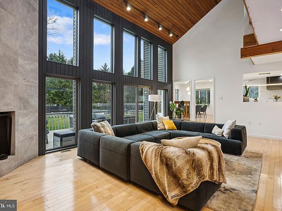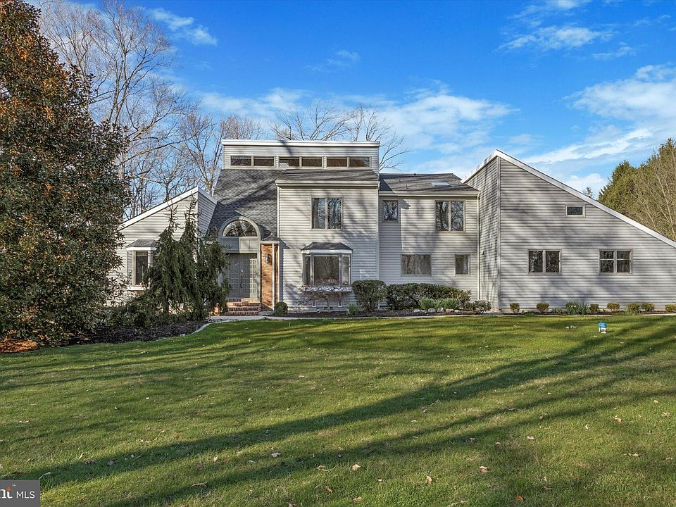 Escape to your own private oasis at 879 Cox! Nestled on 2.45 acres of picturesque landscape, this exquisite turnkey modern MCM home offers a tranquil retreat without sacrificing convenience. Explore the surrounding nature trails, admire flourishing gardens, or take a dip in the refreshing pool, all within the seclusion of a private lane. Step through the original, custom double doors and bask in the abundance of natural light that floods the interior, offering captivating views of the lush surroundings. Recently upgraded with high-quality doors and brushed gold hardware, every detail exudes elegance. The main living room is a grand space adorned with two-story windows, vaulted ceilings, and a newly tiled fireplace, drawing your gaze upward to the second story. Seamlessly flowing into the brand new, custom renovated kitchen and dining area, this home is designed for effortless entertaining. Indulge your culinary passions in the gourmet kitchen, featuring custom cabinetry with pullouts, an oversized island with waterfall quartz countertops, and top-of-the-line Thermador and Wolf appliances. A cozy breakfast nook bathed in natural light provides the perfect spot for morning coffee or engaging conversations with guests. For formal gatherings, the generously sized dining room awaits, while practical elements like a large pantry, mudroom with custom cabinetry, and first-floor laundry room ensure both style and functionality. Down the hall, discover a modern home office with built-in shelving, making remote work a breeze, along with a first-floor bedroom and newly renovated bathroom, catering to every lifestyle need. Step outside onto the gorgeous deck overlooking the meticulously maintained pool, boasting recent upgrades including all new equipment installed in 2022 and a mesh pool fence, ensuring enjoyment for years to come. Ascend the dramatic staircase to find beautifully appointed bedrooms with ample closet space, serviced by a spacious hall bathroom renovated in 2021. The primary suite offers a vaulted ceiling, balcony, and a luxurious bathroom featuring a jacuzzi tub, glass shower, and dual sinks. A loft space awaits, offering endless possibilities for recreation or relaxation, including play area, work out space, reading nook, or additional office. This home has been meticulously maintained, reflecting years of care and attention. Recent updates including a new roof, custom blinds, tankless water heater, HVAC system installed in 2017, and smart switches enhance both comfort and efficiency. With a Tesla charger in the 3-car garage, and a spacious driveway, you will never have to worry about parking. Ideally located just 10 minutes from downtown Moorestown and 2 miles from I-295, it offers the perfect balance of serenity and accessibility for commuting and shopping needs alike.