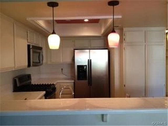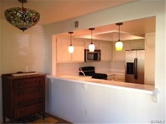 Gorgeous and highly upgraded single story condo one mile from the beach and close to everything. This unit boasts two master suites. Formal living and dining rooms, Fireplace that is gas but also wood burning, upgraded lighting throughout, wood laminate floors. Newer carpet. Kitchen has stainless steel appliances and a breakfast counter. Shows light and bright with lovely, partially covered patio area for entertaining. Bathrooms boast tileInside laundry with full size washer and dryer. Lots of custom touches throughout such as display shelving and storage cabinets.Located steps away from association amenities such as pools, spas and lush landscaping. Assigned parking space with storage unit and plenty of guest parking. Truly a lovely place to call home!