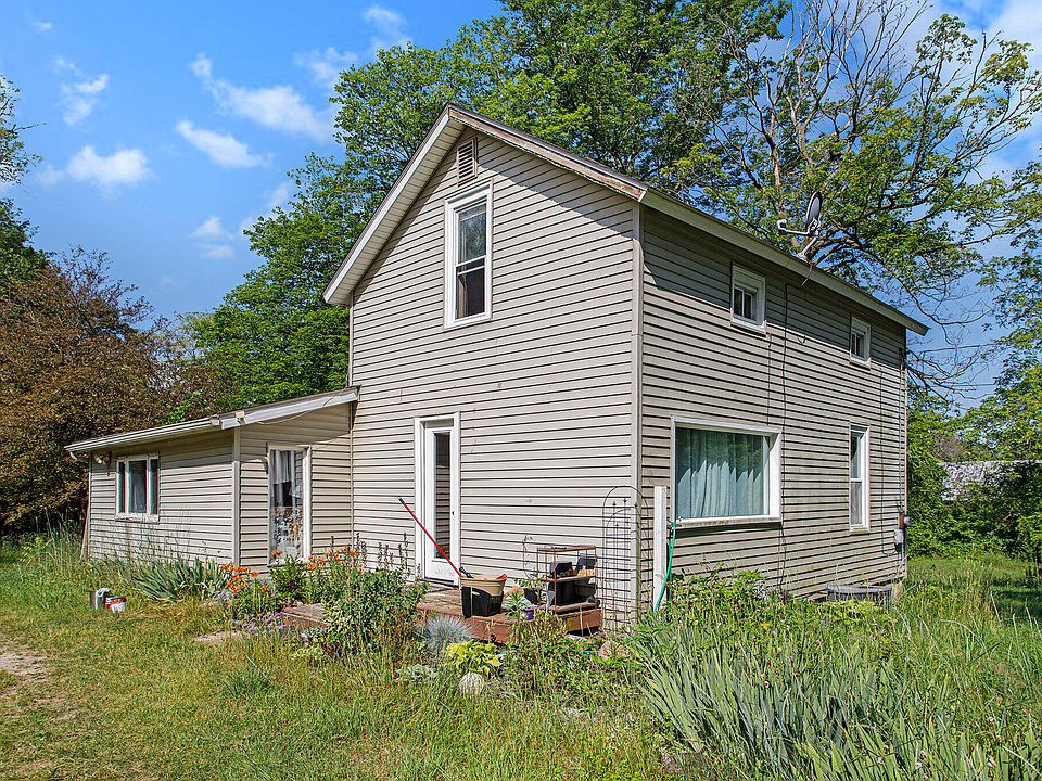 Welcome home to this beautiful farmhouse on 1 acre. Features include a large covered front porch that is great for relaxing and enjoying nature. Large kitchen and eating area, a huge living room. Main floor laundry with a mudroom. Central air that will keep you cool during hot days and nights! 20x24 garage has electric, cement floor and a loft area for additional storage, circular driveway makes it easy to come and go. Beautiful mature trees and newer well. Schedule your private showing today.