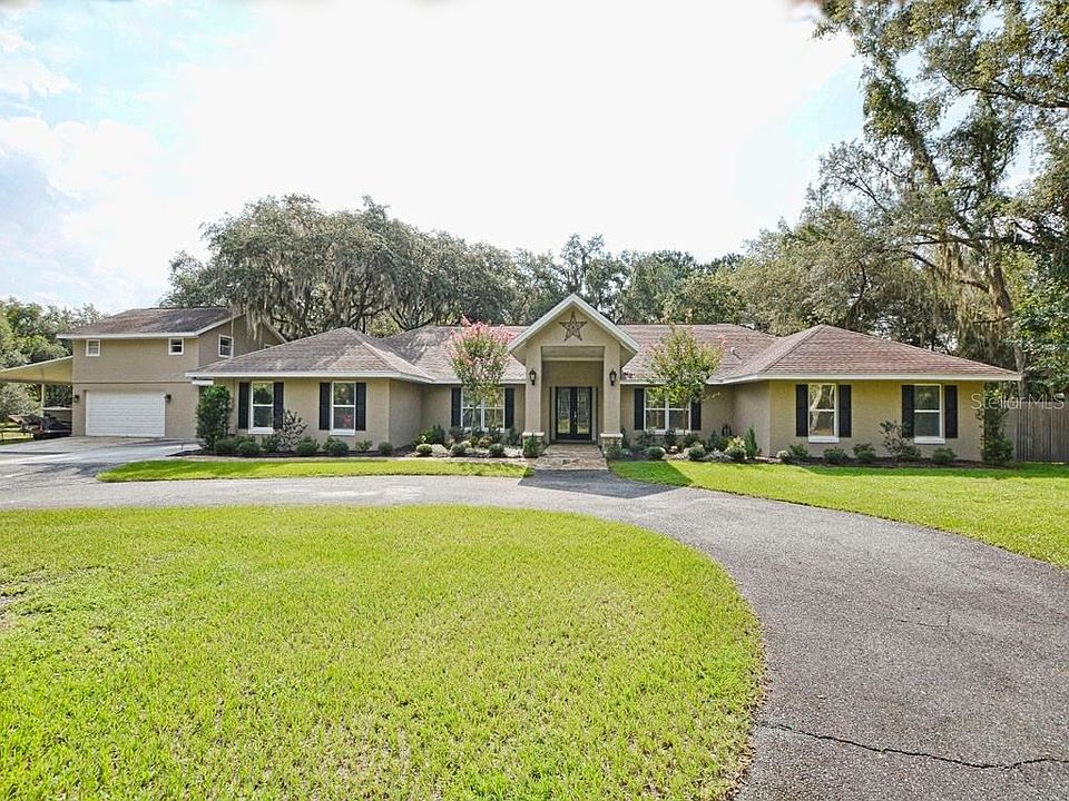 A property like this comes on the market once in a lifetime. This amazing home features 6 full bedrooms and 3 full bathroom in the main house and a complete 1 bedroom, 1 bathroom garage apartment. The moment you walk in the front door you will be greeted by volume ceilings, beautiful crown moldings and an amazing wood burning fireplace. The large kitchen has like new stainless steel appliances, granite counter tops, large center island and beautiful custom cabinetry. The large master bedroom, 30x13, has his and her closets, and a large reading areas. The master bathroom, features his and her vanities, a large jetted soaking tub and a beautiful walk in shower with his and her shower heads. On the other side of the home is where you will find the 2nd master retreat and 3 spacious bedroom. The indoor laundry room has a bead board ceiling, built in cabinets and a custom sitting area. The rear of the home you will find an huge screened rear porch that over looks the back yard and the large pond. The garage apartment features laminate wood flooring and a complete kitchen with new full size appliances. The home sits on 6.9 acres, that showcases some of the most beautiful live oaks you can imagine; the owners regularly see Sand hill cranes, wild turkeys and deer on this majestic lot. In addition this home has extra parking and storage for your RV or boats. The owners have touched every inch of this home so all the new owners need to do is move in and enjoy their new move in ready home.