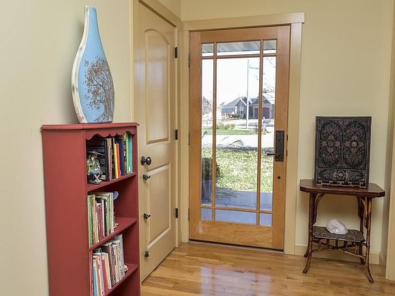 Unique Prairie Style home built in 2005! All the architectural details are in place lending to modern or classic furnishings. Graceful curved fireplace, open kitchen design to living area. Lots of counter space, center island. Upper cabinets illuminated. It's a very pretty kitchen. Mill work throughout accentuates the clean lines of the Prairie style. Main floor is mostly hardwood. All brick, energy conscious construction. Wide cul-de-sac lot with fenced back yard.