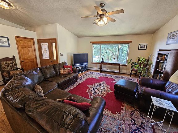 Nestled in the picturesque landscapes just 10 minutes West of Durango, Colorado, you'll find a charming 3-bedroom, 2-bathroom ranch style home that embodies the essence of comfortable living. Sitting on an expansive lot of over half an acre, this property boasts mature landscaping that envelops the home in natural beauty and serenity. Upon stepping inside, the open-concept design seamlessly connects the living room, kitchen, dining & sunroom, creating a fluid and inviting living space that is perfect for both relaxation and entertainment. There is a combination of beautiful hardwood and tile floors as well as a central see through fireplace. The kitchen is large with lots of cabinets and counter space that a chef will love or great for entertaining. One of the highlights of this home is the expansive primary suite. The attached 5-piece bathroom is a luxurious escape, featuring a deep soaking tub, a spacious shower, and a dual sink vanity. The large walk-in closet ensures that your belongings are well-organized and easily accessible. Beyond the comforts of the home itself, the property offers additional amenities that enhance the quality of life. There is a beautiful stamped concrete patio and the option for RV or trailer parking on the side of the house. Access to the nearby trails and a community playground ensures that the young ones have a place to run, play, and make lasting memories.