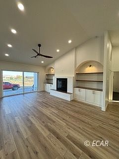 This brand-new home combines modern design with high-end finishes throughout. The kitchen features upgraded cabinetry, under-cabinet lighting, a double-depth island with a garbage pullout, and a convenient pot filler above the stove. In the living room, an elegant arch frames the fireplace, complemented by built-in shelves. The primary bathroom offers a luxurious retreat with pocket doors, a rainfall showerhead, and heated tile flooring. The spacious four-car garage, with clear glass doors and a welder plug, provides plenty of room for vehicles or hobbies. Additional highlights include upgraded interior end exterior lighting, a downstairs kitchenette, built-in laundry cabinets, and 9-ft ceilings in the basement. Designed for comfort and ease of living, this home offers both style and functionality. Home entered for comparable only. Home price does not include lot.