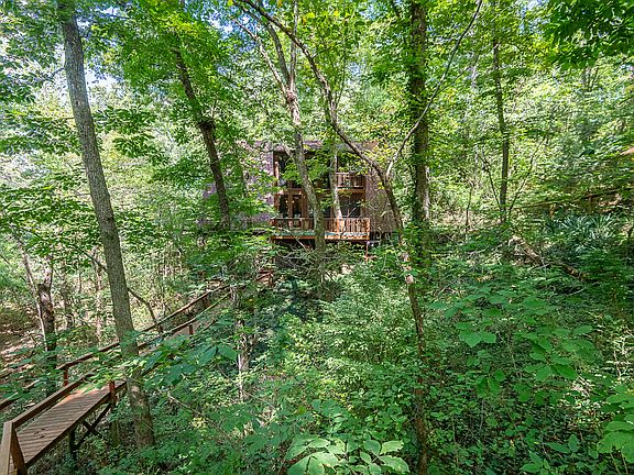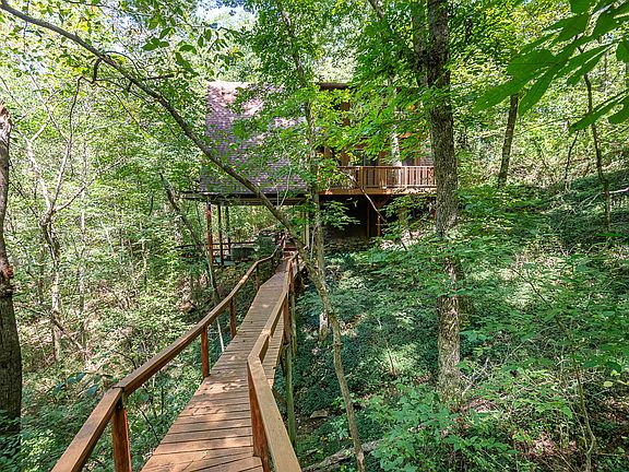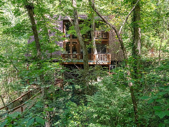 Dreaming of a unique home submerged in nature without a long commute? Located in The Retreat this rustic, private oasis might be the answer to your dreams! Whether you are relaxing in the hot tub or sitting out on one of many decks you will be surrounded by magnificent ravine and forest views with not another home in sight! This one-of-a kind property has a 2-story interior water fall, 3 fireplaces, spiral staircase that wraps around a tree like post, secret passageway and an updated kitchen with Stainless Refrigerator and wet bar. Lower level boasts hearty carved wood that appears to have come from an old Church or historic building and a natural stone wall containing a fireplace and the water fall landing. A-Frame construction has an abundance of windows letting nature flow in. At the western most part of the property you come to the private neighborhood river access. Home requires a touch of TLC and is being sold as is. All appliances stay, including washer/dryer and hot tub!!Come view and fall in love with this retreat and start living the life of your dreams.