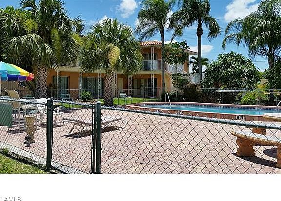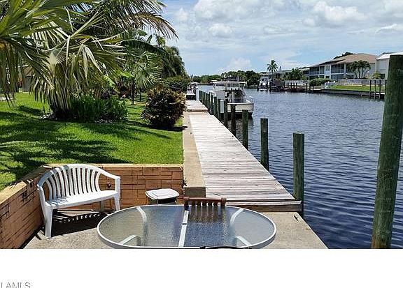 Adorable, cozy home. First floor convenience, Corner unit with tropical oasis like views of the grounds, pool, and canal. 100' wide Gulf access canal only a few minutes to the river by boat. Walking distance to all the social gathering spots in downtown Cape Coral, yet feel like you're miles away from it all with this private setting. Updated unit including tile floors, kitchen counters and cabinets, and paint. Entire building has just received a fresh coat of paint.