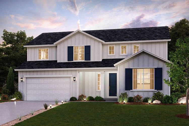 This 5 BR/4 BA Two-Story home offers a main level that includes a spacious kitchen with walk-in pantry and breakfast nook, formal dining area, and great room with optional fireplace. Private entrance leads to a secondary main level bedroom with a walk-in closet and full bath as well as a pocket office. The foyer and additional study round out your main level. The upstairs second floor includes the Primary suite including a private bath with double vanities, shower with separate tub, and a spacious walk-in closet. You can find two bedrooms which share a Jack and Jill bathroom, as well as a fourth bedroom including a walk-in closet and full bath. A loft area and laundry room complete the upper level.