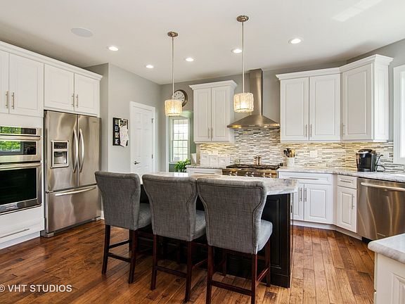 Absolute Perfection in every corner from the Hardiplank and Brick exterior and Architectural Shingles to the no maintenance deck and brick patio to the Hickory Hardwood, marble kitchen counter tops, stainless steel gourmet kitchen appliances and beautiful painted millwork to the wonderful covered side patio overlooking the POND. Two story family room with wonderful natural light. You won't believe the Master Bedroom closet! These owners have laundry in basement but Mud Room on main floor has hookup for washer and dryer, it can be changed before closing. You name it - this home has it including the finished basement with 4th full bath. A M A Z I N G!!! Bring your fussiest buyers, this is perfect! Gorgeous condition, gorgeous detail, gorgeous amenities! The light fixtures in Br#3 and Study do not stay. Much of the furniture can be purchased. The pond is to the left of the house but is not part of this property. **PLEASE NOTE: Tax Bill does NOT include HOMEOWNERS EXEMPTIO