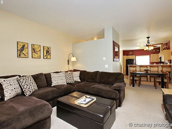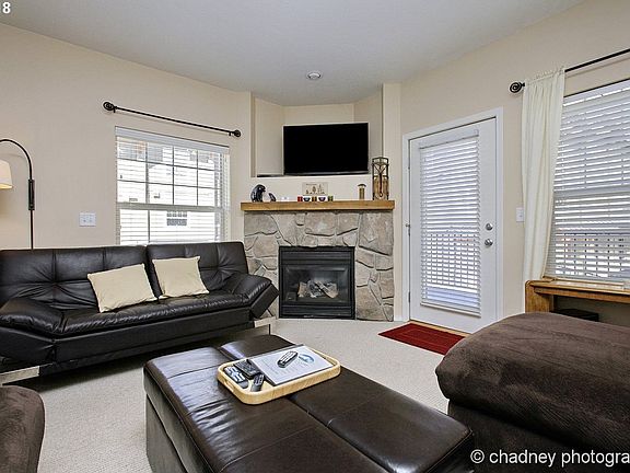 END UNIT near pool/clubhouse next to cul-de-sac. Gourmet kitchen with eating bar open to great room with high ceilings & rock fireplace. Balcony off great room with propane bbq, view of clubhouse & pool area. Kitchen & front bedroom w/ski slope views. Ceiling fans in dining and bedrooms. Vaulted upper level. 3rd bunk room/no closet. Porch to slope shuttle to Skibowl. Heated garage. Sold turn key with minor exceptions.
