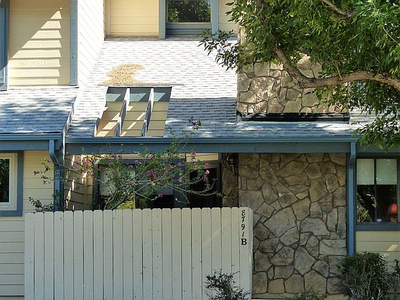 Tastefully updated townhome with 2 car attached garage- Light, bright & open feel with vaulted ceilings, skylights & large windows. Kitchen features granite counters with a slate accent around, a breakfast bar that opens to the dining room as well as an adjacent pantry. Cozy living room features wood burning fireplace and is open to the dining room. Very open design. Upstairs you will find the master suite, complete with vaulted ceilings, his and her closets and private full bath with double sink vanity & garden soaking tub. There is a spacious secondary bedroom, a hall full bath and upper level laundry (for full size units) to complete the upstairs. Fenced in private patio is great for your BBQ. Great location close to schools, restaurants, shopping, parks, trails and easy commute to surrounding highways. This one is sure to go fast, don't miss it!