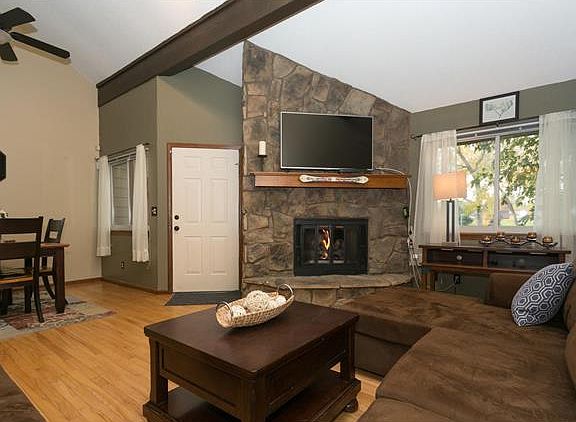 Great Location Across the Street from Beautiful Park! Open Vaulted Family Room with Rock Wall Gas Fireplace. Kitchen has a Breakfast Bar and Opens to Large Dining Area with Hardwood Flooring. Spacious, Vaulted Master Bedroom with Private Bathroom, Double Sinks in Separate Vanity Area and His and Hers Closets. Nice Sized Secondary Bedroom and Additional Full Bathroom. Washer and Dryer Hook Ups Located on the Upper Level. Wonderful Fenced In Patio, Great for a Barbecue!Great Complex Which Includes a Pool! Centrally Located Near Parks, Walking Trails, Restaurants, Shopping and Major Highways!Don't Miss the Attached 2 Car Garage! Central Air, Ceiling Fans, Lots of Anderson Windows and More! See This One!