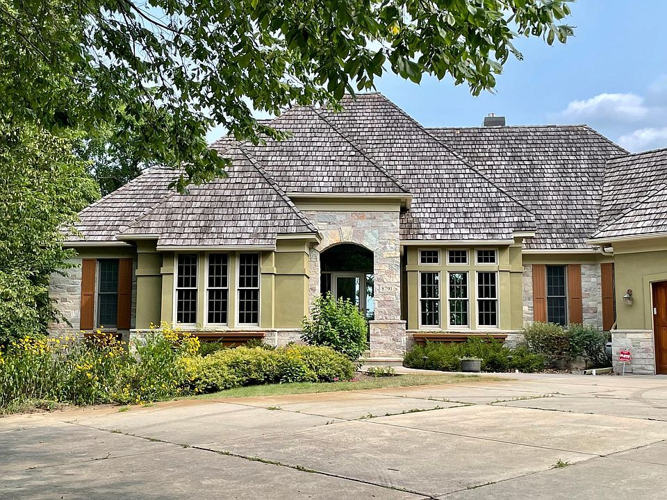 Gorgeous executive rambler with views of Legends Lake at Legends Golf Course! The welcoming foyer opens up to private office with custom cabinets and shelving, formal dining with vaulted ceiling and a sunfilled living room with amazing views. Gourmet kitchen has natural stone counter tops, Thermador and Sub Zero appliances, informal dining space and sunroom that opens up to large covered deck with retractable screens. Master suite has large walk in closet and bath ensuite. Fully finished lower level has billiards area, bar room and family room that walks out to patio! See supplements for details of all the upgrades and amenities!