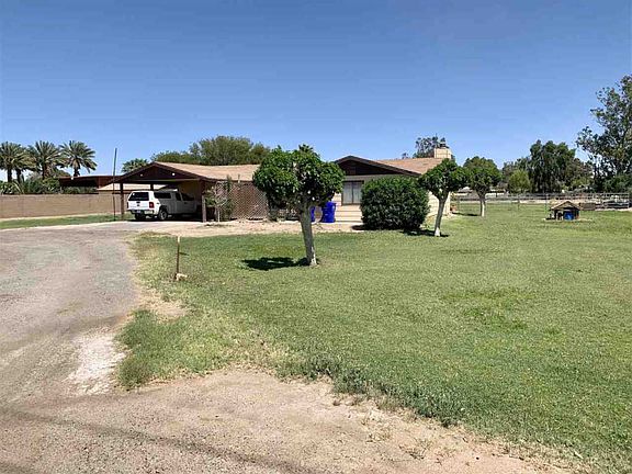 Great home in Valley Citrus Estates. This home features 3 bedrooms, 2 bath, and an attached 2 car carport. This home is on 1.07 Acres and has room for horses or FHA animals, RV or other desert toys, and plenty of space for storage.