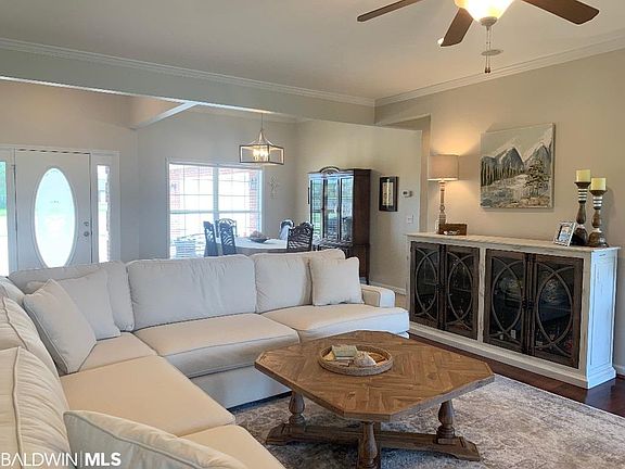 Create your family's memories in this beautifully updated, all brick, traditional 3BR/2BA home nestled in a quiet cul-de-sac of Greystone Farms Subdivision. Conveniently located near Highway 59, you will have easy access to numerous restaurants, retail stores, entertainment venues, and most importantly, the beautiful white sand beaches of the Gulf Coast. This well-maintained home has freshly painted neutral colors, hardwood floors, beautiful tile, NEW carpet, NEW light fixtures throughout and a NEW fortified roof installed in2019. The open floor plan, with lots of natural sunlight, provides a perfect setting for family gatherings and parties. Create delicious meals in the eat-in kitchen equipped with gorgeous granite countertops and stainless-steel appliances. Serve your guests in the dining room or casually on the patio which flows onto a vast fenced-in backyard. The split floor plan provides privacy for the master suite and two guest bedrooms. The trey ceiling offers a spacious relaxing environment in the master bedroom. The large master bath includes a double granite top vanity, a