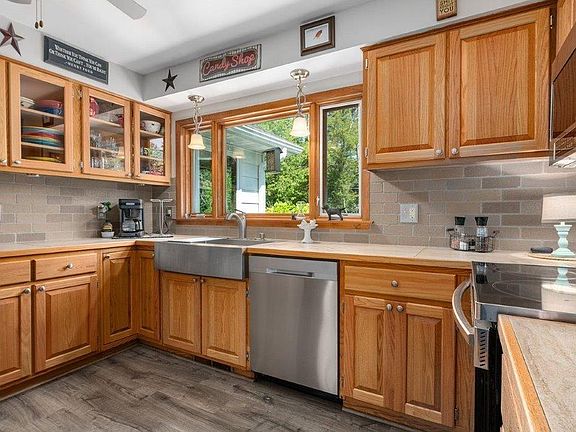 Awesome "Cape Cod" styled home in town with a beautiful interior reminiscent of the 50's -60's bygone era! Elegant, very useful interior design creating separate spaces for the entire family. There is simply too much to describe in a "write up" so let your fingers do the clicking via the pictures. This home has had many upgrades/remodels since 2018 such as kitchen, flooring, baths and more! The garage was rebuilt with a reinforced roof so the upper-level vaulted attic can be finished which provides a walk out onto an amazing large deck potential. The home has 3 baths and 3 + bedrooms with one being an amazing upper-level suite! Don't let the small sized parcel fool ya! This amazing lot has great privacy in the back featuring outside deck, lawn space, mature fruit trees and garden. Terrific location across the street from 36 acres of Sayner Town lands and walking distance to all this little charming town amongst the State Forest has to offer.