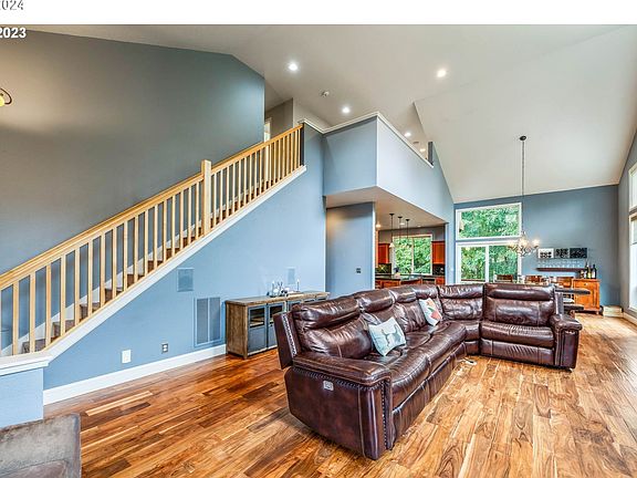Custom built & single owner 4 bedroom home in a quiet Veneta neighborhood AND ON A DOUBLE SIZE LOT! Come home from work on a long day to this beautifully updated 4 bedroom home nestled at the end of a quiet neighborhood surrounded by nature! The lot features a large deck (recently stained) overlooking a large backyard area offering plenty of room for the kids & pets to fun & play! You'll enjoy cooking dinner & entertaining guests in the spacious kitchen, dining room & family room with 2 story vaulted ceiling & wood floors! The kitchen features granite counters, stainless steal appliances. The primary bedroom is located on the main level & features a large walk in closet & full bath including a jetted tub, walk in shower & double sink vanity! The rest of the family has plenty of space upstairs with 3 bedrooms, a loft with a balcony & jack & jill bathroom connected to one of the bedrooms. Additional features include extra storage & closets throughout so no space is wasted, extra windows throughout for extra natural light & walk in storage under the house accessed from the backyard! Property has been confirmed dividable & buildable by the city of Veneta. Build your dream home, divide & sell the lot or build a home for a family member!