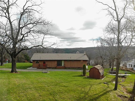 KEUKA LAKE VIEW! This one owner home was exceptionally well taken cared for. Easy living on one level. 3 bedrooms plus a bonus room (Could be used as a den or a 4th bedroom), Newer roof and furnace (less than 5 years old), central air, central heating system plus a coal stove, and anderson windows. The basement features a nice open and dry space. So much potential to add additional living space. Boosts a quarter bathroom, worksop, and a cold storage room. Large front deck with gorgeous views of the lake. Spacious .78 acre lot, a garage, and a shed. Less than 5 minutes to the village!