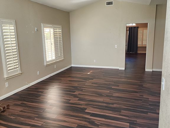 This one-story Orangecrest home has been highly upgraded. There are three bedrooms, two nicely upgraded baths, a laundry room, an attached 2-car garage, a living room with vaulted ceilings and fireplace, a large open kitchen with granite counters, an optional ADT security system, an 8-camera security system, a dining room, remote-controlled ceiling fans with lights in all bedrooms, recessed lighting throughout the common areas with dimming features, newer a/c and forced air heat, fresh paint, porcelain 'wood style' plank flooring in all common areas, carpet in bedrooms, upgraded main closet, barn doors in two additional bedrooms, plantation shutters throughout, patio lattice and sun shades, tile roofing with a solar panel system, nicely desert landscaped front yard with fruit trees in the backyard, and a perimeter cinder block wall. It is two blocks from Orange Terrace Park, the library, and athletic fields. It is three blocks from Franklin Elementary School and Earhart Middle School. A mile from King High School. Close to shopping and dining options. Public transportation is readily available as is the 215 freeway, Van Buren Blvd, and the 91 freeway. Photos will be available by the end of the week 9/27/2024. The lease duration is 1 year, with the option of extending the term. Utilities are not included but greatly reduced due to the tankless water heater, solar panel system, newer HVAC system, and drip line irrigation throughout the property. ADT system is optional but at a low rate of $44.03/month. The tenant will be responsible for minor landscaping maintenance of the backyard.