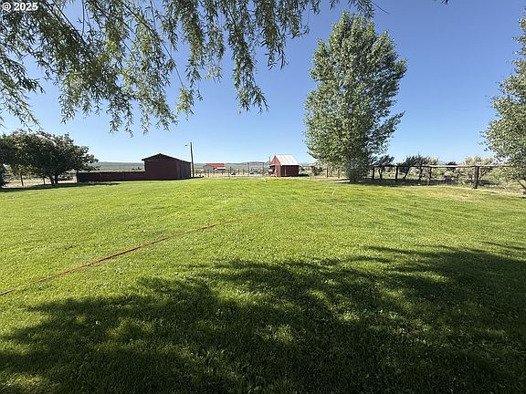 Ready for freedom, wide open spaces and doing things YOUR way? Then you've found the place to call home! The beautiful manufactured home has very nice upgrades including metal backsplash in kitchen, newer lighting, and nice flooring. The property has beautiful trees and the grass is lush and green. There is large Quonset hut shop with electricity and concrete floor which has both vehicle doors and person door. The outdoor horse riding arena is approximately 225'x 120' with really good footing and could easily be repurposed for a variety of uses if you don't have horses. There are four stalls with runs, several outbuildings, chicken coup and a fenced pasture for livestock. The property is laid out to easily drive through with full sized trucks, parking in dozens of vehicles which would be a great option for a trucking or equipment owner. Enjoy the fire pit, covered porch and plenty of time to relax and enjoy. The city water is abundant and only $72 per month! The views are wonderful, there is plenty of elbow room and it's just a wonderful place to call home.