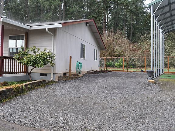 This cute 3 bedroom 2 bathroom home with porch and an oversized 1 car garage sits on a flag lot down a long driveway. Property includes a RV carport with 30 amp hookup. Fruit trees and blueberry bushes on site. Property has low yard maintenance. All kitchen appliances and washer/dryer included in sale. Home has been freshly painted inside!