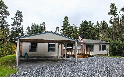 NICE, CLEAN, ROOMY 2003 mfg home RECENTLY remodeled by contractor Barney White. BIG open plan. NEW paint, carpet, laminate floors, stove, counter tops, some new windows & doors, gravel rd, & a new double carport! Deck in front for relaxing. Xtra parking for recreational toys. Huge grass covered PRIVATE back yard. 3 minutes to town in a Peaceful & quiet location.