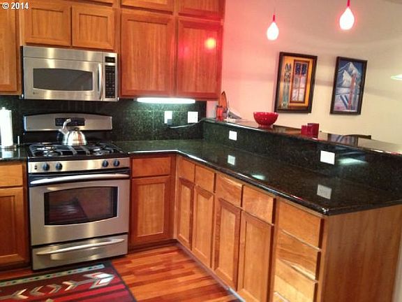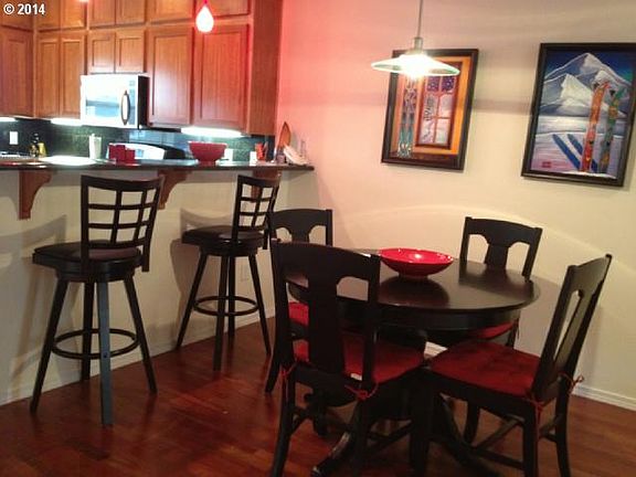 Mt. Hood VIEWS from living & master; Ski slope views from kitchen and guest. Den can be used as 3rd sleeping room (no closet). Upscale finishes include cherry floor & full height cabs, ss appliances, granite, floor-ceiling rock fplc, custom lighting, open picket railing, extra wall insulation & air cleaner on furnace. Mostly furnished with art and minor exclusions.