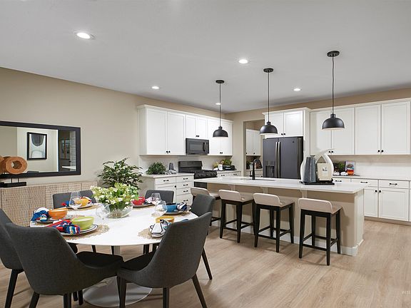 “The Pewter” by Richmond American Homes. This ranch-style floor plan includes a very exciting feature—a 45’ deep RV garage! The interior of the home is just as attractive, and centers around an open layout with a great room with center meet doors to the covered patio, a dining area and a kitchen with a center island and a large walk-in pantry. Off the great room, the owner’s suite showcases a walk-in closet and a private bath, and can be optioned with a door to the covered patio. This plan has been personalized with a great room fireplace. Turnkey with front and back landscape and sprinklers along with full backyard vinyl fencing INCLUDED! 9' ceilings and tankless water heaters INCLUDED! Stop by our furnished model home at 18207 N Begonia Way, Nampa, ID 83687 and ask us about Builder paid closing costs (2%) and interest rate (as low as 5.5%) promotions. Restrictions apply. *PHOTOS SIMILAR*