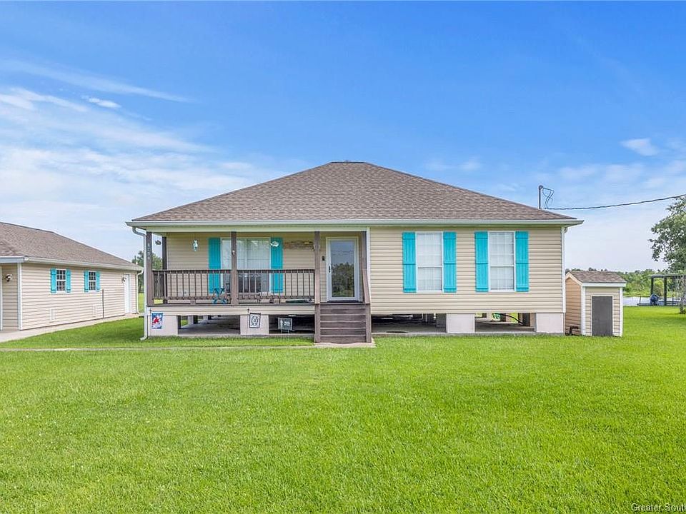 **Priced below appraised value** Waterfront getaway 15 minutes from downtown Lake Charles., and 15 minute boat drive to the Inter Coastal. This property offers an open floor plan that's turn key. Inside features kitchen with lots of cedar cabinets, granite counters, tile backsplash, and SS appliances, dining, that opens to the living room. New luxury vinyl flooring throughout and neutral colors. Generous size rooms. Guest bed could hold bunk beds, and a primary suite for your convenience. This could be the perfect place for a first time home buyer, retiree or an investor, for an Airbnb, or Vrbo. The roof and Trane A/C are 3 yrs old. This property is located on a dead end road. As Louisianan's say, laissez le bon temps rouler." Exterior features 2 covered porches, for your morning coffee, tea, to watch the sunrise. There's plenty of room for parking with a long concrete driveway, 600 sq ft RV Port, 2 car carport, 2 car garage with an attached workshop. Sprawling over 1.5 acres and meticulously thought out are decks, fire pit, outdoor kitchen, shed, boat house, slip, around 600 ft of bulkhead and no wake. Bring all the jet skis, boat, kayak, paddle board or boat, fishing and crabbing gear. Come get a slice of Sportsman paradise! Flood Insurance policy is transferable. Sits high and dry on a concrete slab and has never flooded. Sale As Is Where Is" Age, lot size, and measurements are m/l.