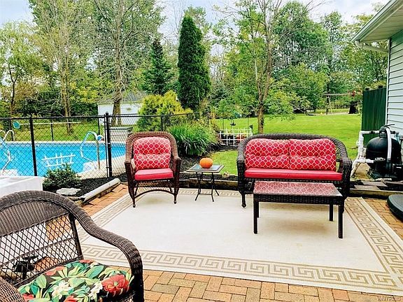 Situated on almost one acre of land this 4 bedroom, 1.5 bath colonial is waiting for you to call it home! Step through the sliding glass doors off of the kitchen to a park like backyard . Enjoy summer on your patio and in your fully enclosed in-ground swimming pool. Eat in kitchen with breakfast bar. Covered front porch. Furnace and A/C 3 years. Roof 10 years. Pool liner 7 years. Refrigerator 1 year and stove and dishwasher 7 years. Located in the Clarence School District. Showings begin at Open House on Saturday 9/28/2019 from 1-3:00 p.m.