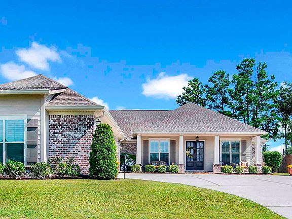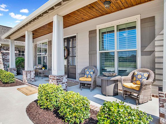 The popular MADISON floorplan built by TRULAND HOMES is waiting for you in the beautiful French Settlement Subdivision. This split floorplan has 4 bedrooms, 3 full bathrooms, and a much sought after 3 CAR GARAGE! There is a space for every imaginable use. This house exudes luxury and comfort with custom details including wainscotting in the dining room, crown molding, plantation shutters, blinds & door shades. Enter through the heavy-wood mahogany double doors into the foyer. Open air layout allows formal dining room to open to family/great room and continuously flow into the chef’s kitchen. Gourmet kitchen boasts beautiful white painted cabinetry, granite counters, stainless steel appliances including a 5-burner gas range, dishwasher, built-in wall mounted microwave, refrigerator with ice maker, subway tile backsplash and enormous oversized pantry. A convenient breakfast nook off the kitchen includes a wet bar with additional storage and built in wine cooler. The primary bedroom boasts room for larger furniture and hails a spa-like bath with oversized garden tub, double vanities, tiled shower, separate water closet and TWO closets with wood shelving. This split floorplan showcases 2 other bedrooms off the kitchen separated by a jack-and-jill style bath, large laundry room with broom closet and convenient “drop-zone” by door leading to garage includes a custom mud-bench for backpacks and coats. Enjoy your afternoons outside in the screened porch area or have a BBQ with family and friends on the extended patio. This home is built to Fortified Gold standards, complete with 5 zone irrigation system, gutters, and a fully fenced back yard. This home offers privacy as is located across from a green space. Community amenities include a resort style swimming pool and clubhouse. French Settlement is centrally located in Daphne and convenient to shopping, schools, and I-10. This home is a must see. Don't miss out, schedule a tour today!