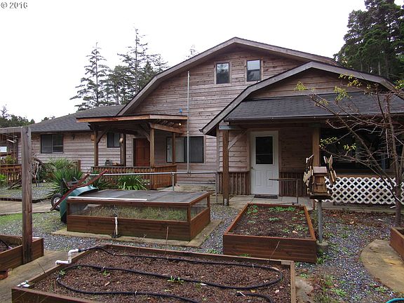 3 Bed/2 bath Custom home on the edge of Bandon.2 bonus rooms for work space, plenty of storage & 2 half baths.Huge family rm w/wet bar. Deck off upper bedrm w/covered patio below.Detached studio w/canning kitchen & full bath.5 garages/outbuildings for ALL your toys & workshop needs.All located on .93 acre lot, only minutes to Ocean beaches. property has 2 Wells. Call to view today!