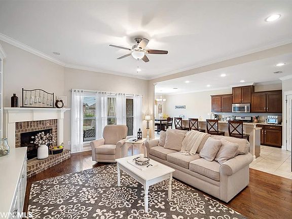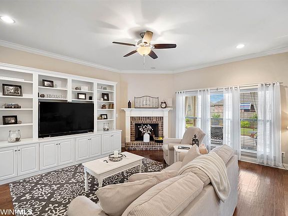 The wonderful community of French Settlement in Daphne is where you will find this great new listing that has everything you're looking for! The beautiful stained front door welcomes you into the oversized foyer with beautiful hardwood floors that continue into the spacious living area. The living room has a corner gas log fireplace and a fabulous wall of custom built-ins where you will find a place for all your treasures! This one-level floor plan is open to the perfect kitchen complete with granite countertops, nice size island with bar seating, large corner pantry and stainless appliances including a gas range. Enjoy eating in the bright and sunny dining space that overlooks the fenced backyard. The outdoor space is complete with a covered patio that has been extended for even more entertaining space. The Master Bedroom is roomy with a trey ceiling and an en-suite with dual vanity, soaking tub, separate shower and TWO walk-in closets. The additional bedrooms are also nice size with plenty of closet storage, and the additional full bath has a double vanity with granite. This home has newly added eave can lights, a Nest thermostat and is Gold Fortified for insurance savings! Community amenities include an outdoor pool and clubhouse. Schedule your private showing soon!