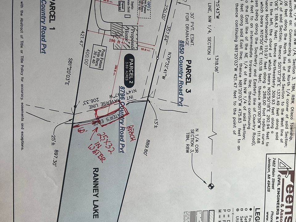 This last available beautiful lake front lot has a gravel road installed, and has been cleared for a future home site. . Peaceful Ranney lake provides abundant wildlife viewing. Walking trails, and river access are close by for recreation. Already approved for well and septic, this beautiful nearly 4 acres has available plans for 2,400 sq ft custom home designed by celebrity architect for an additional cost. Not many gems like this still available! Address is Greenville, but close to Belding.