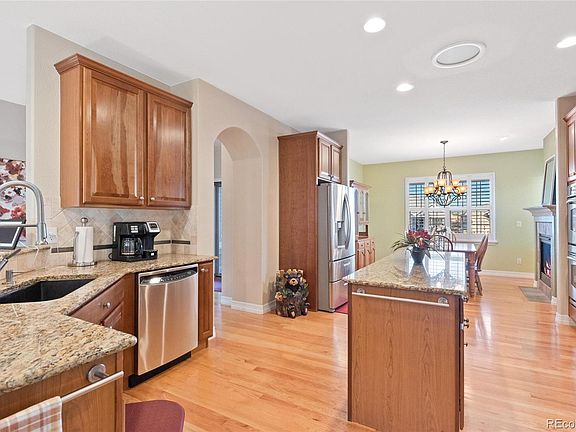 Welcome home to this meticulously maintained ranch home with finished basement and is located in the highly desirable Heritage Todd Creek 55+ community. Enjoy the open floor plan which flows seamlessly from the foyer to the kitchen and into the inviting living room and then out to the spacious, covered patio, a great gathering spot for all occasions. The kitchen features double ovens, gas cooktop, granite counters and stainless-steel appliances. The kitchen includes a large center island, and bar top counter with many cabinets. The laundry room/mud room has an additional utility sink, washer and dryer are included. Beautiful hardwood floors accent the main floor. Two gas fire places create a welcoming environment with lots of windows. The spacious primary bedroom is private with a view to the backyard and a relaxing ensuite with walk-in closet, soaker tub, a beautiful walk-in shower, and linen closet. The main floor also has a 2nd bedroom, and a full bath at the front of the house. The finished basement has a rec room for game nights, pool table, hobbies and a wet bar ready for your refrigerator and wine refrigerator. There is an additional bedroom and a 3/4 bathroom. Work shop for home projects, scrap books, craft room, your imagination awaits. We didn't forget about storage: there is large crawl space for additional storage. The covered patio & attached paver patio opens out to a peaceful, private backyard, beautifully landscaped but very low maintenance. The 2-car garage has room for your golf cart and included cabinets. Enjoy resort like amenities at your finger tips, gated community, and golf cart friendly. You'll never have to go anywhere, 2 1/2 blocks to the clubhouse and all of the amenities including Pickle Ball, Pools, Hot Tub, Fitness and classes. Snow removal for the front walk (over 3") included in your HOA. Close to I25, HWY 85 & DIA and the new King Soopers grocery store at 136th and Quebec St. Schedule your showings today!