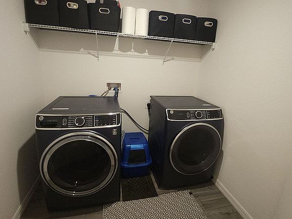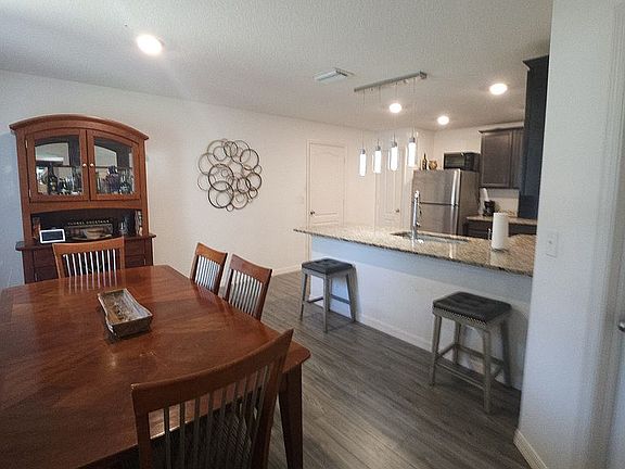 This house is beautiful and modern with it's approx. 2600 SqFt. The home features 5 bedrooms and 4 bathrooms. It's boasting space with a great view of the sky from the back of the house! There is vinyl wood plank flooring throughout the kitchen, dining, living areas, and bathrooms. The spacious bedrooms, stairway, and loft area are carpeted. Many updates have been made inside, and updated landscaping as well. The master bedroom is on the main floor, with a massive bathroom and walk in closet. The 2 car garage, with electric door opens up into the kitchen with it's granite countertops and breakfast bar. The ceilings are high, and every space in this home is bright and open, giving a well flowing layout. This is an absolute dream home, with access to the Jr. Olympic style pool, gym, playground, and sports court, located at the heart of a gated community.